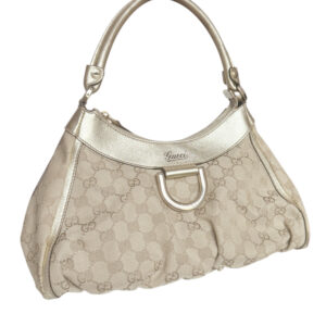 Gucci Monogram D Ring Hobo Shoulder Bag in Beige / Gold