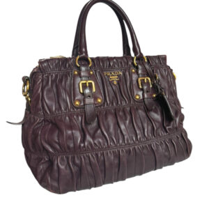 Prada Leather Ruched 2-Way Hobo Shoulder Bag in Maroon / Gold
