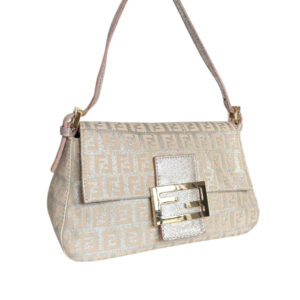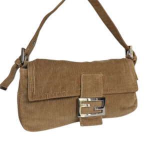 Fendi Corduroy Shoulder Baguette Bag in Beige / Silver