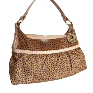 Fendi Leopard Print Calfskin Chef Shoulder Bag in Brown / Baby Pink / Gold