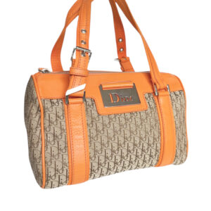 Dior Monogram Mini Boston Bag in Beige / Orange / Silver