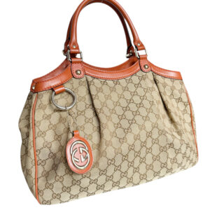 Gucci Monogram Sukey Hobo Shoulder Bag in Beige / Tan – Orange / Gold