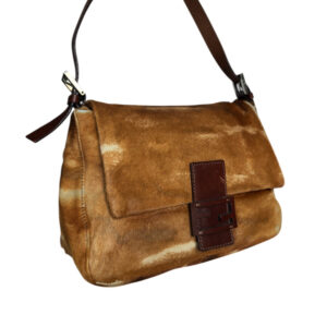 Fendi Mottled Calfskin Mamma Shoulder Baguette Bag in Brown