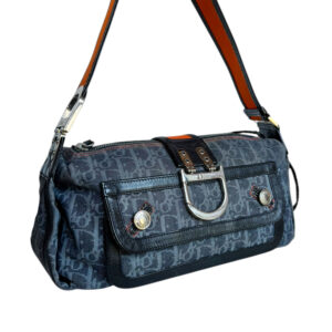 Dior Monogram Denim Flight Shoulder Bag in Blue / Orange / Silver