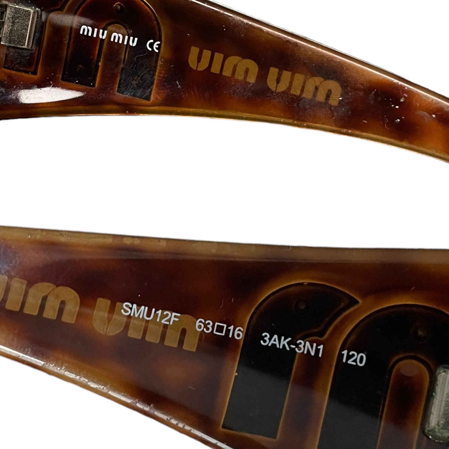 Miu Miu Logo Oversized Wraparound Sunglasses in Tortoiseshell Brown / Silver